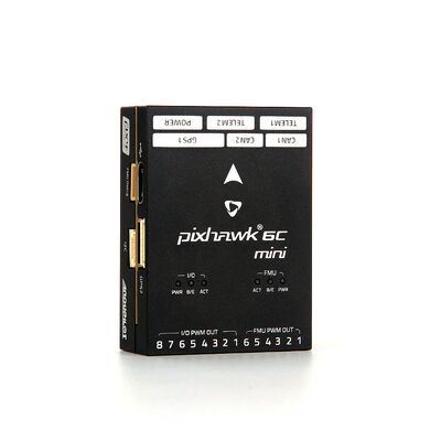 The Pixhawk® 6C Mini is the latest update to the successful family of Pixhawk® flight controllers, based on the Pixhawk® FMUv6C Open Standard and Connector Standard. It shares the same STMH743 microprocessor and sensors as the Pixhawk® 6C. Compared to the standard Pixhawk® 6C, this Mini version has a built-in PWM header, and some ports have been removed in order to fit this Mini form factor.